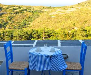 Max guests: Area: 26 m2This room is located on the ground floor. It has two twin beds and two sofa beds, with an an elegant wood and glass separation. View of the terrace and the countryside around Chora. It includes a private bathroom with shower, mini fridge and air conditioning.